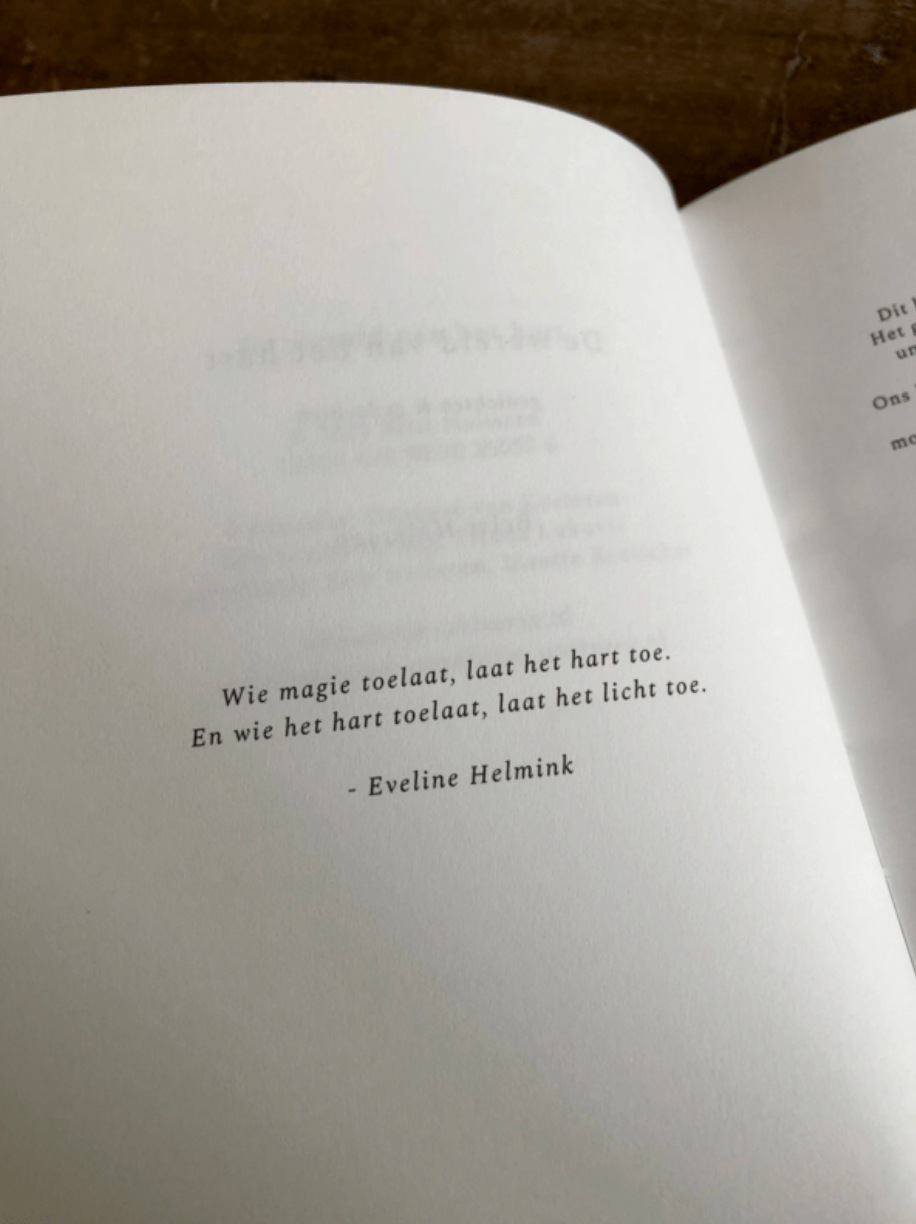 Een bundeling van gedichten en gedachten over liefde, verbinding en thuiskomen in je eigen hart. Het boek is een combinatie van gedichten, teksten en foto’s.