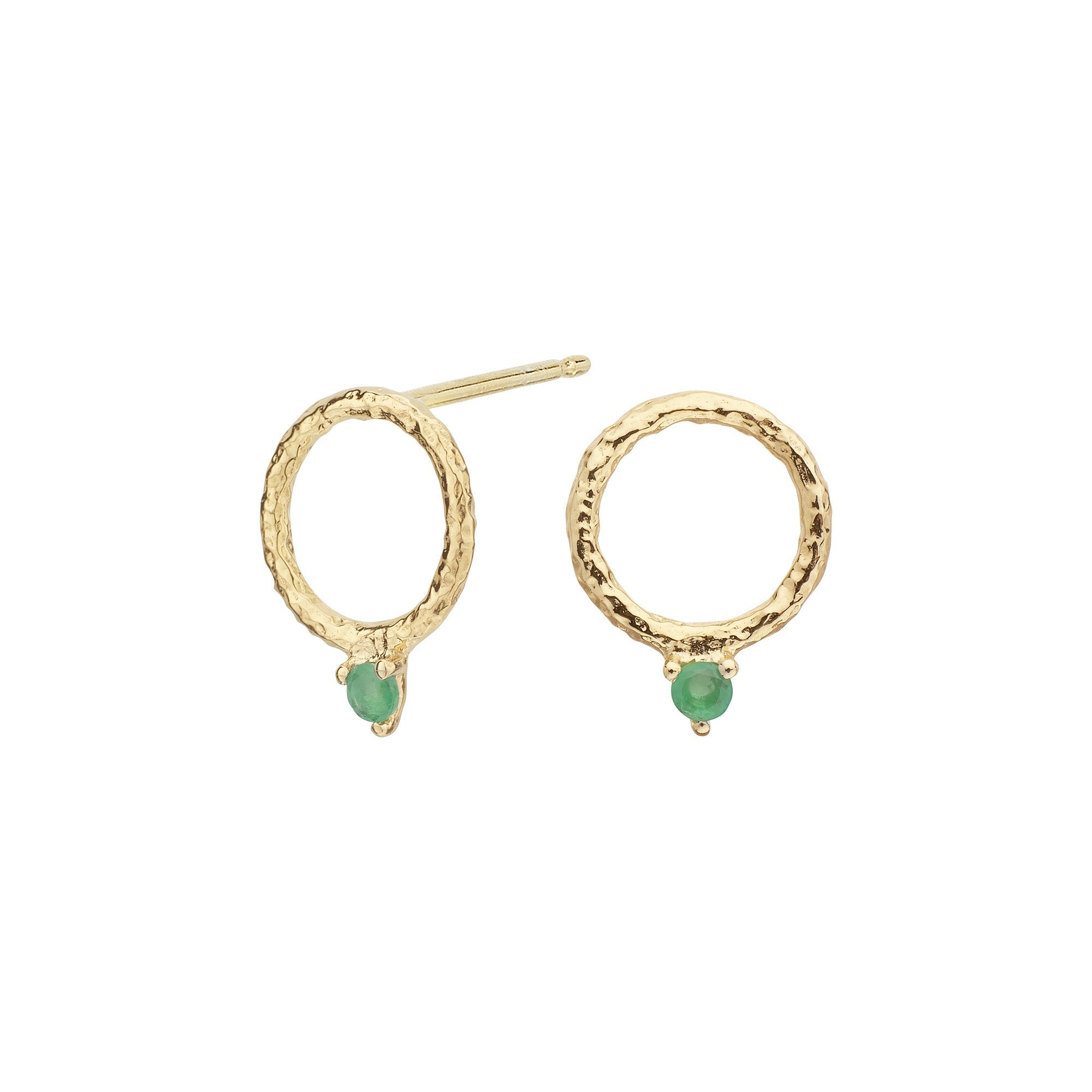 De vergulde smaragd oorringen zijn een uniek en elegant stuk. Ze zijn gemaakt van geelverguld zilver met een gehamerde afwerking die ze textuur en glans geeft.